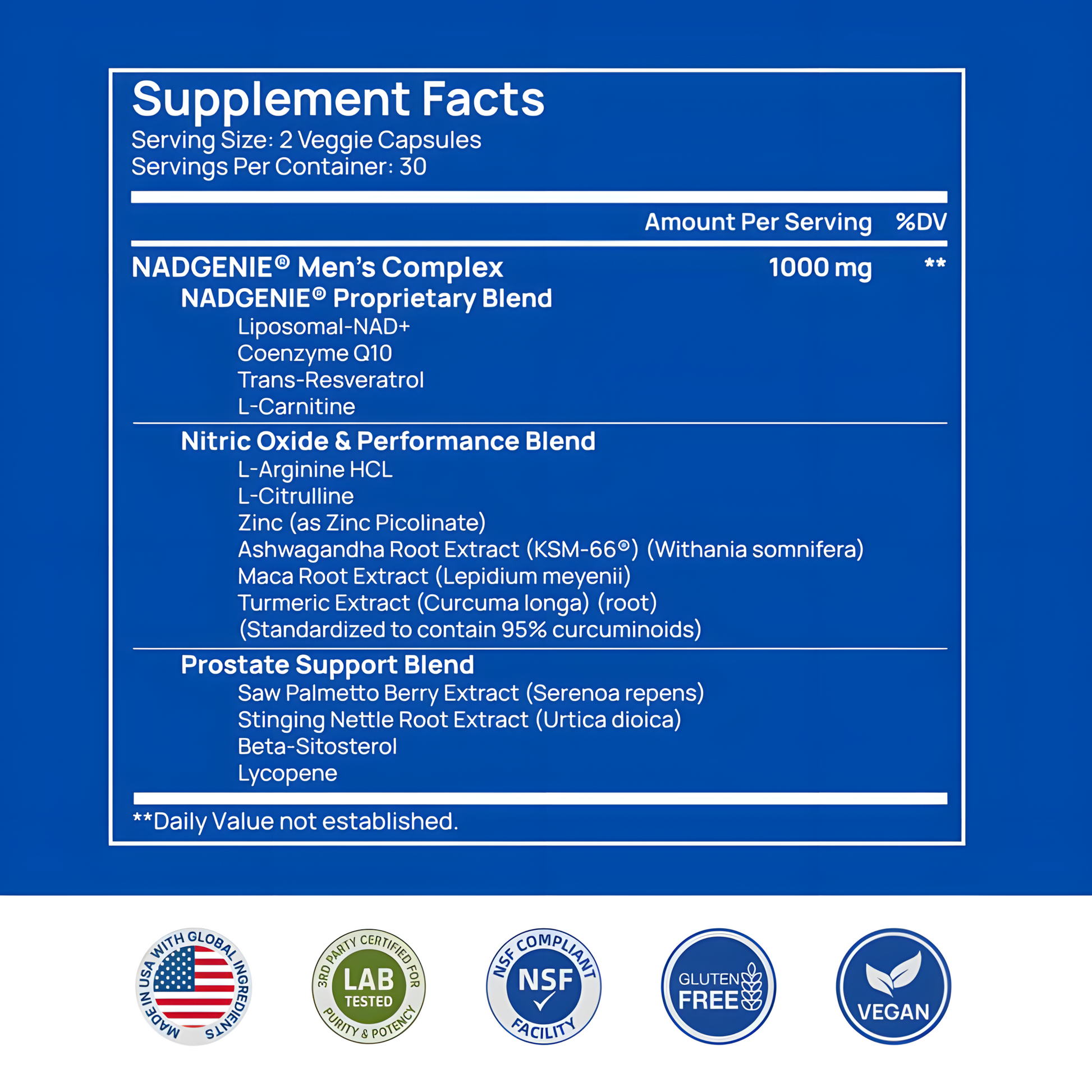 Our formula combines ingredients that synergize — NAD+ supports cellular repair, while L-Arginine and L-Citrulline boost nitric oxide for blood flow. The result: real performance, not temporary stimulation.